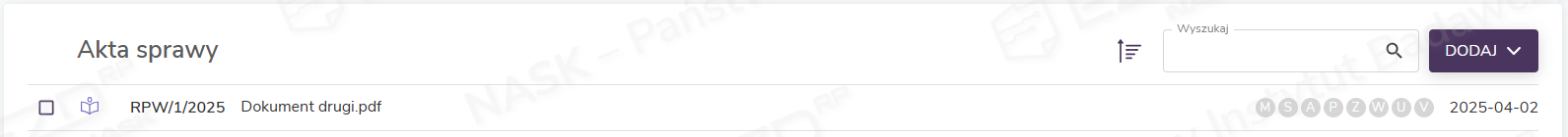 Dokument zostaje dodany do RPW, a system nadał mu numer: RPW/1/2025. W systemie pojawi się odpowiedni wpis.