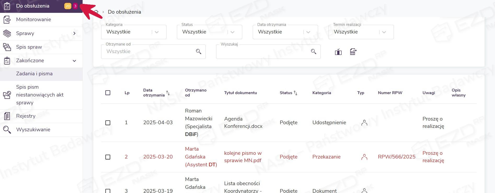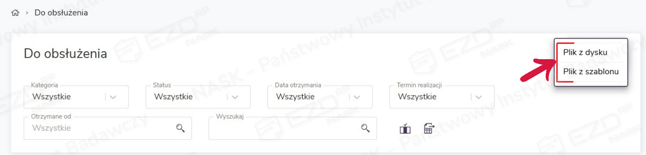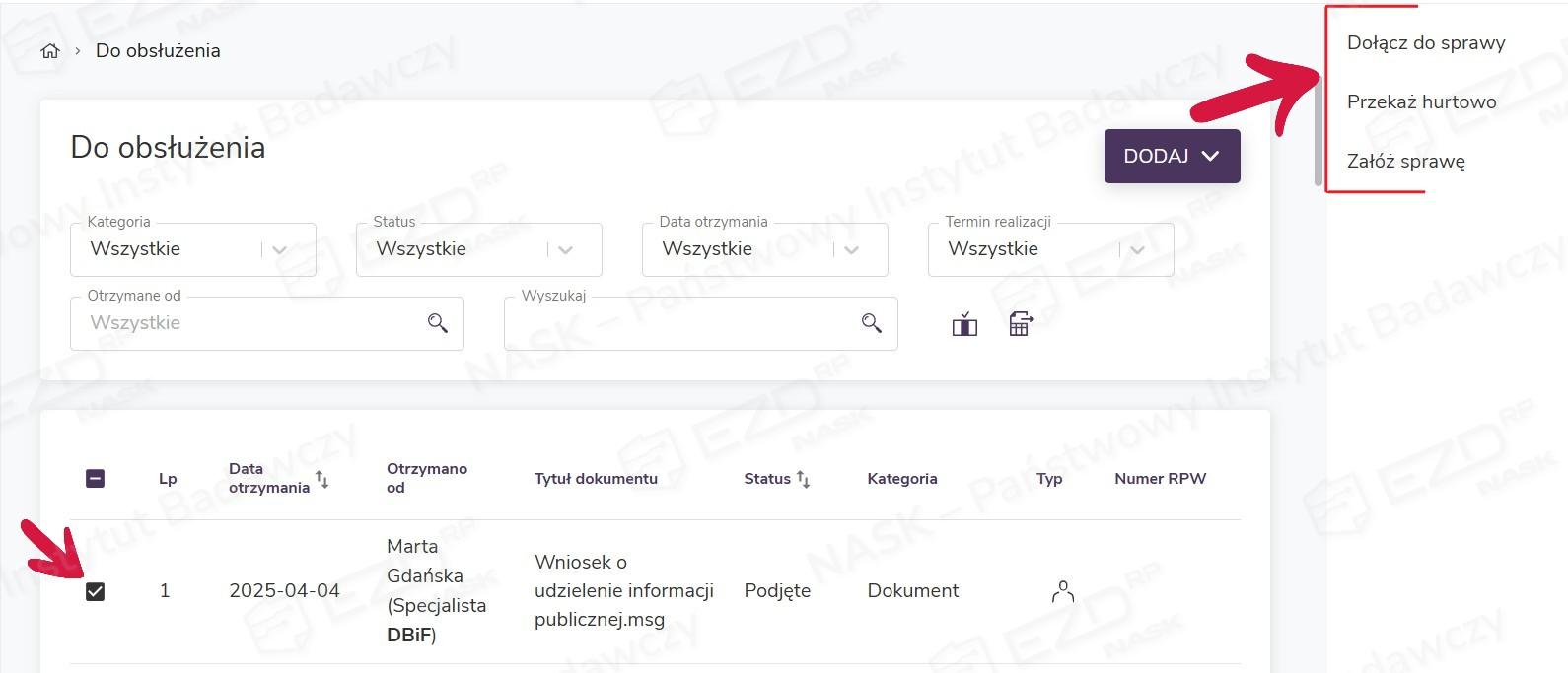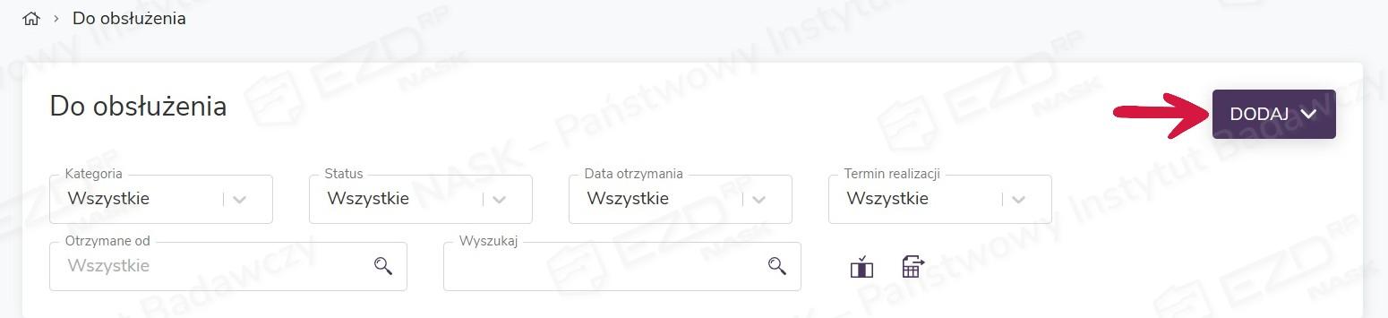 Dodany dokument (lub dokumenty) pojawi się w sekcji Do obsłużenia.