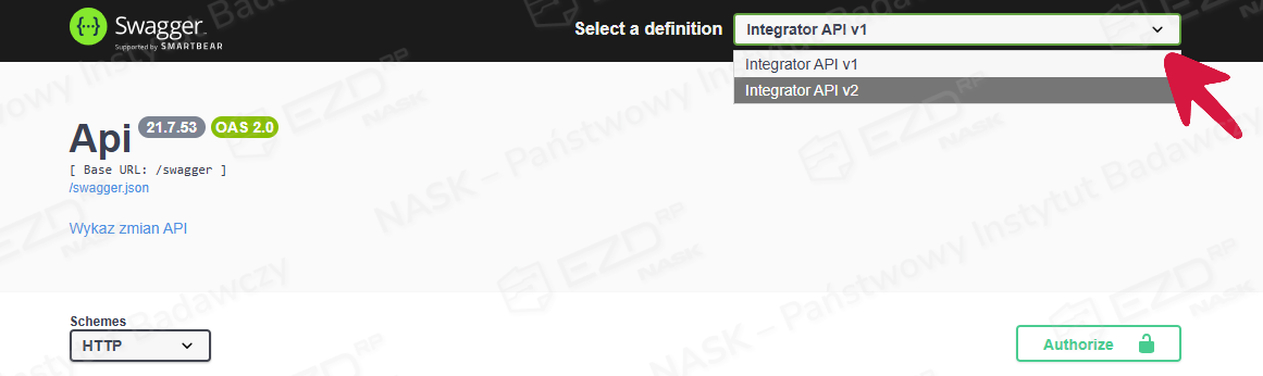 Swagger zawiera aktualną dokumentację dla drugiej wersji (v2) interfejsu API EZD RP. To tam będą na bieżąco utrzymywane i aktualizowane wszystkie opisy dostępnych metod oraz szczegóły dotyczące integracji.