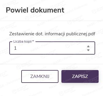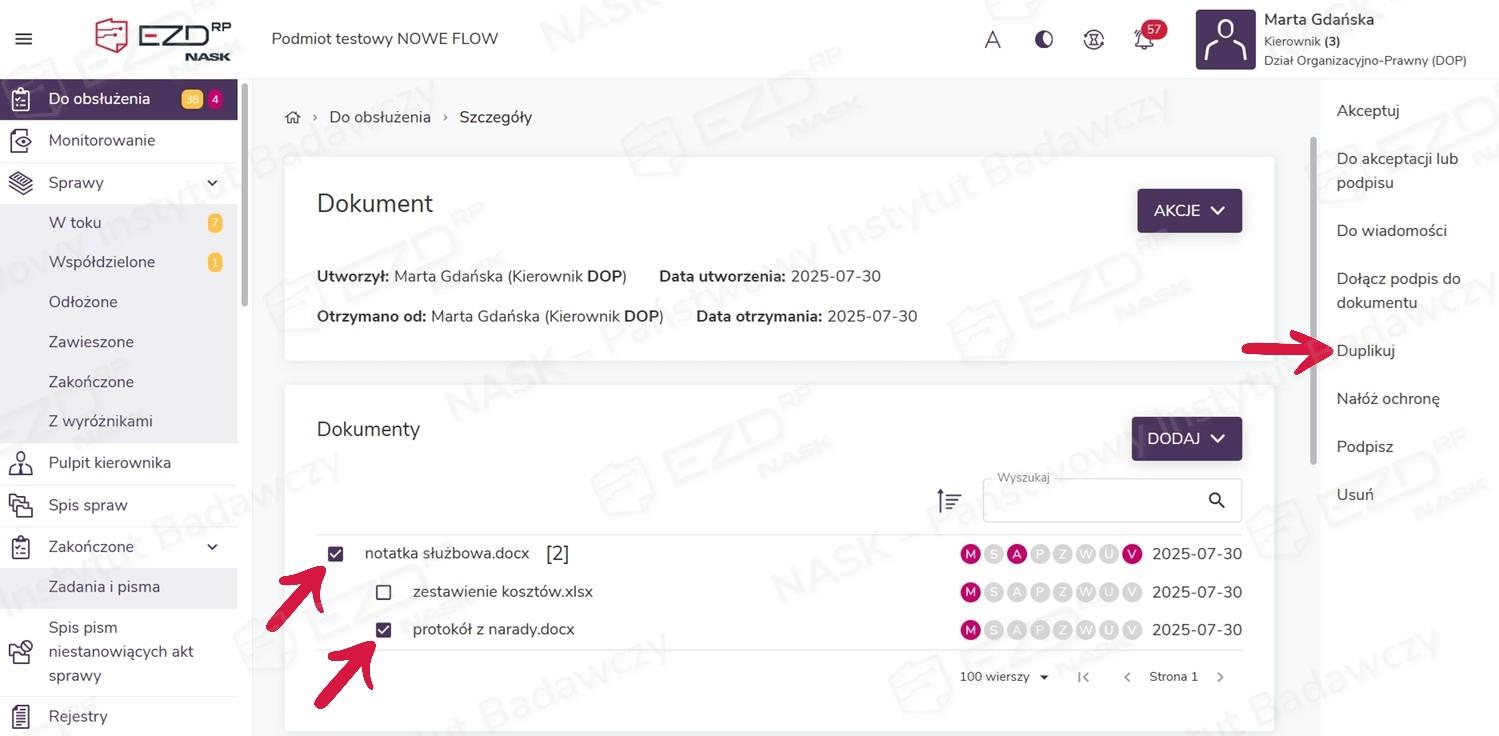 Można zaznaczyć do powielenia więcej niż jeden dokument. Jeśli posiada on załączniki, zduplikowane zostaną wyłącznie te, które użytkownik zaznaczy.