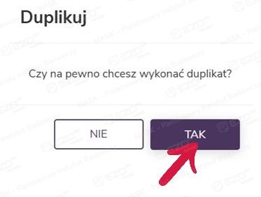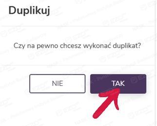 Wybranie w prawym menu opcji Duplikuj powoduje wyświetlenie okna, w którym należy potwierdzić chęć wykonania tej czynności przy pomocy przycisku Tak.