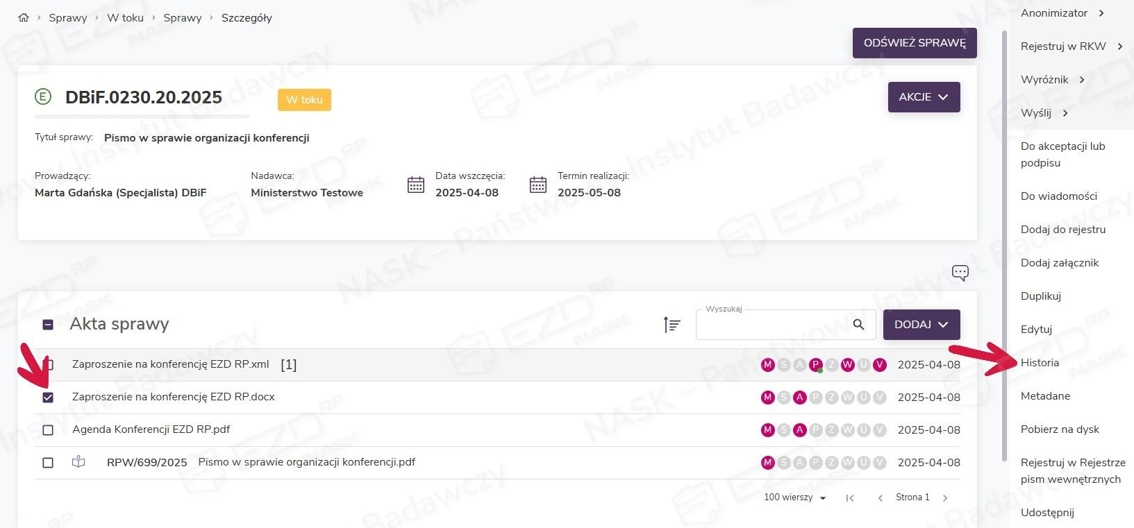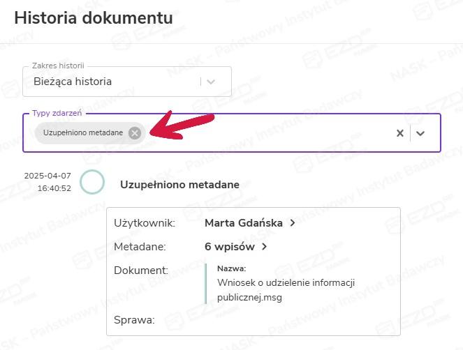 Analogicznie postępujemy, gdy chcemy zapoznać się z historią pisma, które znajduje się w sprawie.