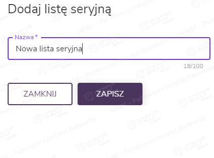 - zmianę nazwy listy seryjnej – opcja Lista seryjna > Zmień nazwę,