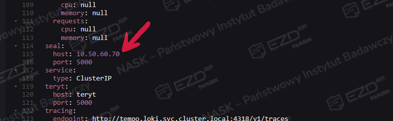 Wyszukuje linijkę seal i zmienia host na adres IP serwera zainstalowanej usługi do podpisu pieczęcią elektroniczną.