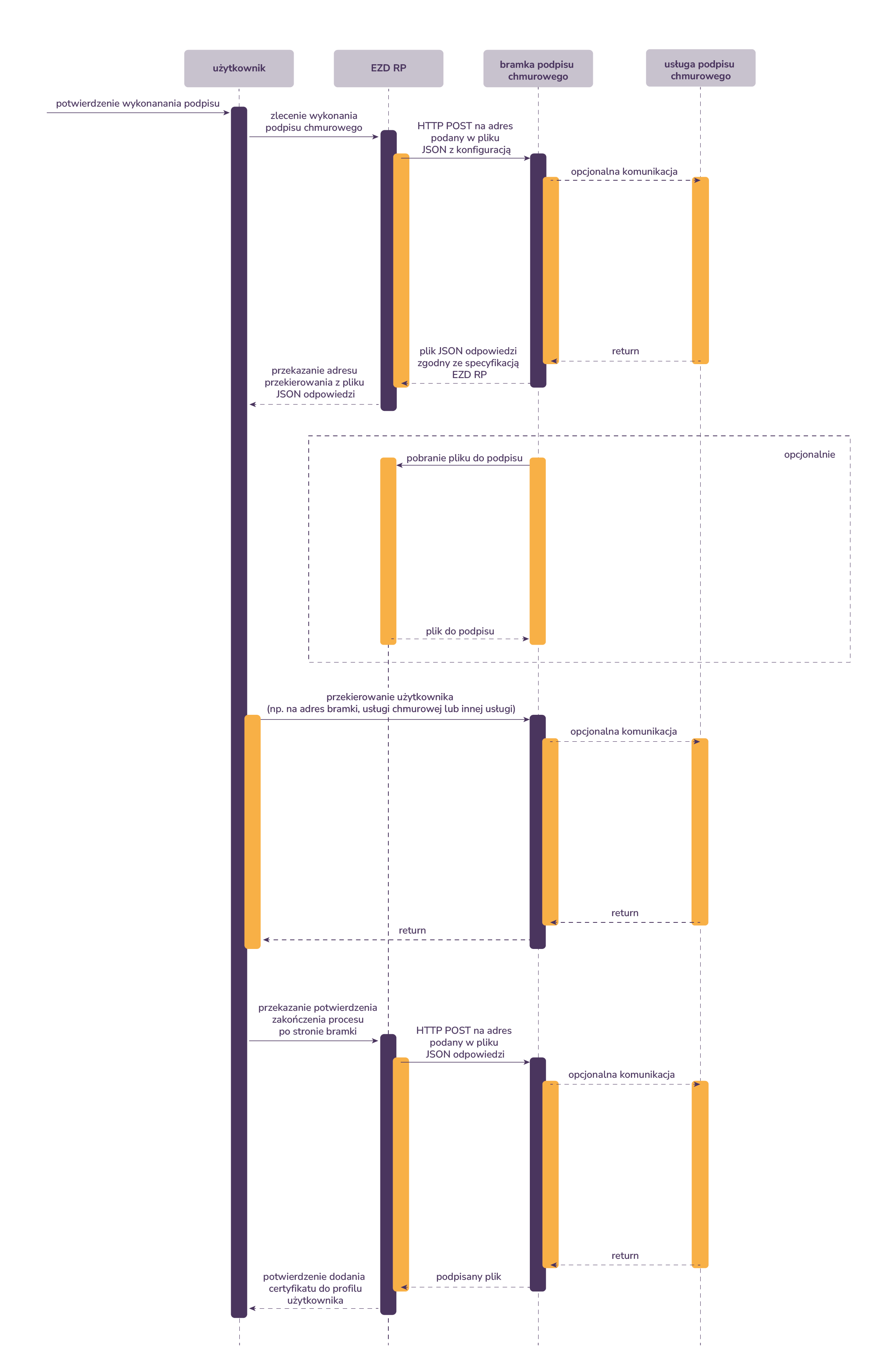 - implementacja i udostępnienie modułu pośredniczącego zgodnego z API opisanym w tej dokumentacji, który zapewnia komunikację między systemem EZD RP a usługami podpisu chmurowego;