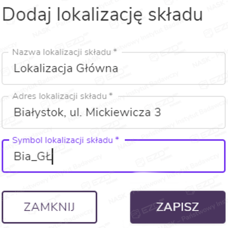 Po kliknięciu przycisku Zapisz pozycja pojawi się na liście lokalizacji składów.