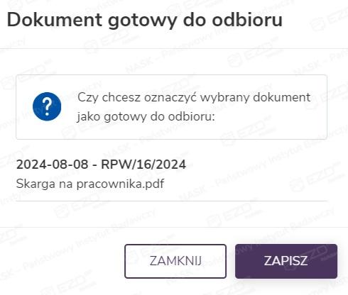 Dokumenty gotowe do odbioru