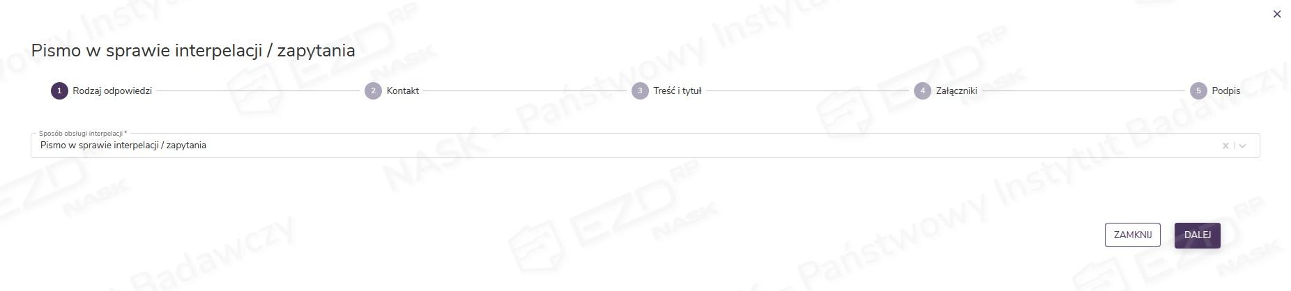 W systemie EZD RP możliwa jest obsługa interpelacji poselskich. Użytkownik z nadanym uprawnieniem w przypadku otrzymania interpelacji może udzielić na nią odpowiedzi, odpowiedzieć poprzez przekazanie dodatkowych pytań lub przesłać ją do innego, właściwego organu. Wszystkie te czynności są możliwe do wykonania z poziomu Akt sprawy, w której znajduje się rzeczywista interpelacja zarejestrowana w Rejestrze przesyłek wpływających.