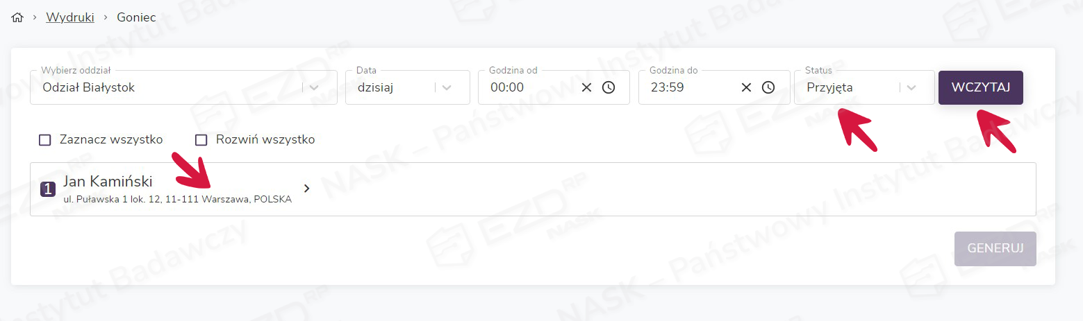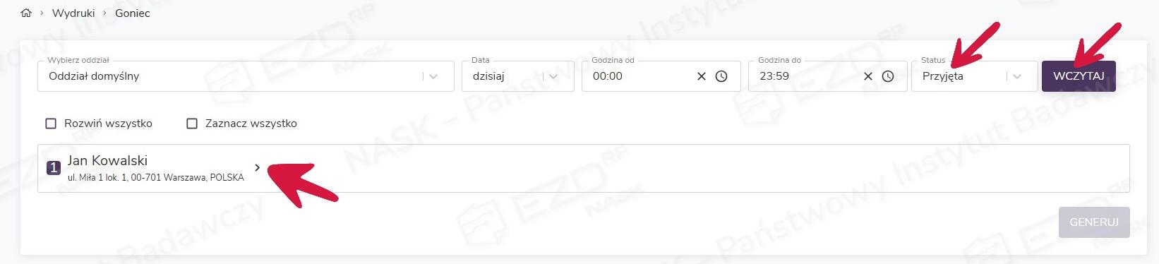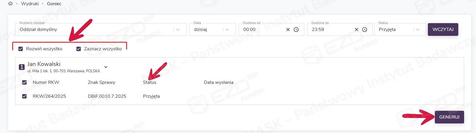 Po zaznaczeniu wybranych pozycji należy kliknąć przycisk Generuj.