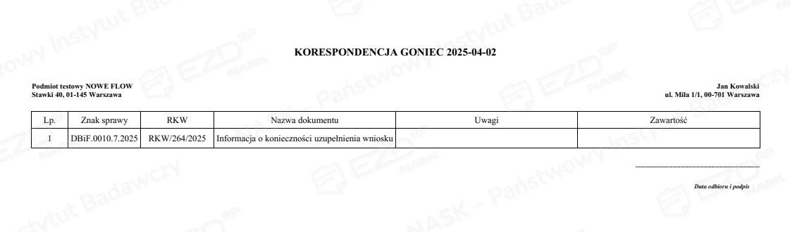 Obsługa korespondencji i zestawień dla gońca – dla wariantu systemu oznaczonego literą B