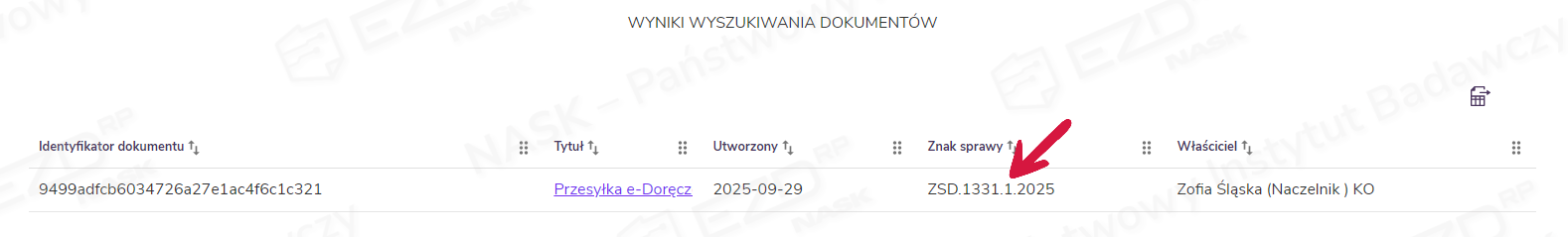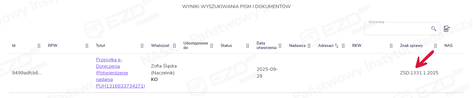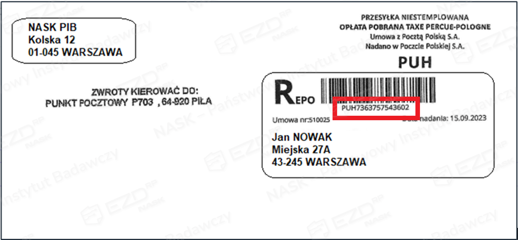 Ten sam numer znajduje się w tytule dowodu nadania przesyłki, który po dostarczeniu w formie elektronicznej przez operatora wyznaczonego został umieszczony w folderze przesyłki znajdującym się w Aktach sprawy.