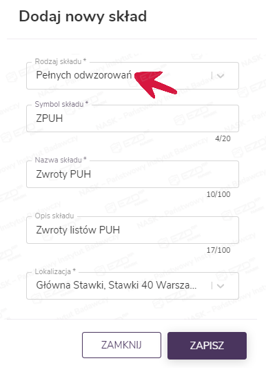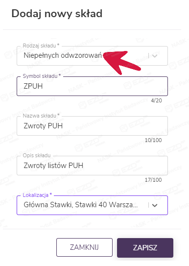 Z uwagi na rejestrację zwrotów listów PUH jako przesyłek wpływających nie ma możliwości rejestracji listów PUH do składu Listów zwróconych – administrator powinien skonfigurować odpowiedni skład w rodzaju Pełnych odwzorowań lub Niepełnych odwzorowań z przeznaczeniem do rejestracji zwrotów listów PUH.