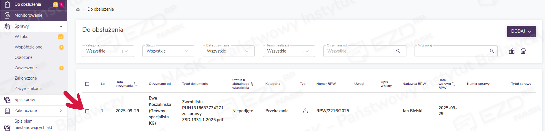 Po pierwsze należy wskazać pracownika – odbiorcę, czyli prowadzącego sprawę, z której została wysłana korespondencja, oraz datę faktycznego wpływu zwrotu listu PUH do podmiotu.