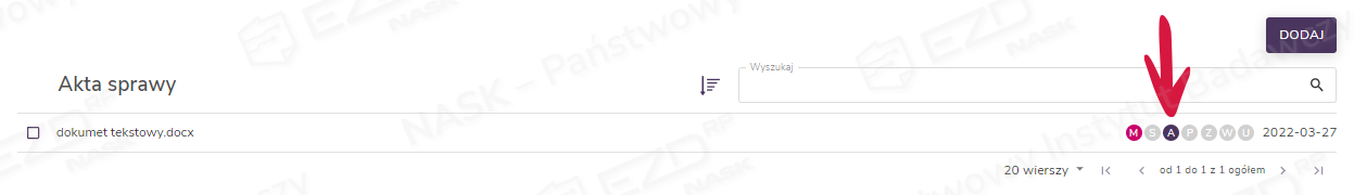 Na koncie użytkownika zlecającego zadanie Do akceptacji ikona oznaczona literą A przy dokumencie, z poziomu którego zostało utworzone zadanie, zmieni kolor z jasnofioletowego (status Oczekuje na akceptację) na granatowy (status Odmowa akceptacji).