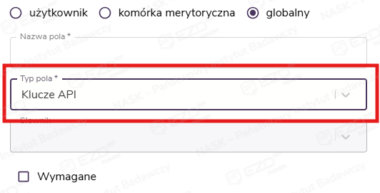 Aby oznaczać obiekty dla systemów zintegrowanych w EZD RP, można wykorzystać atrybuty. Do tego celu przygotowano atrybut o typie Klucze API.
