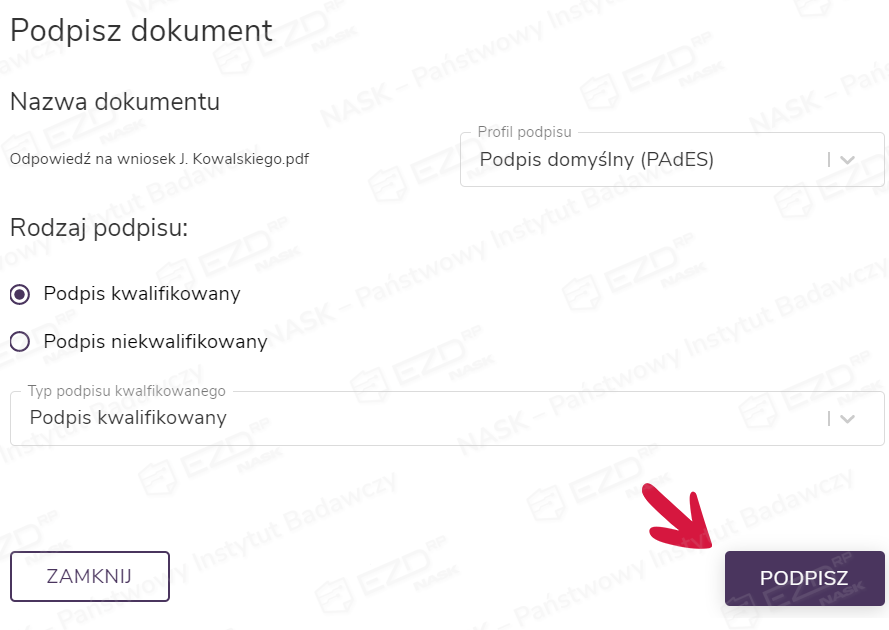 W systemie EZD RP użytkownik ma możliwość podpisania dokumentu załączonego do sprawy. W tym celu powinien najpierw skonfigurować podpis elektroniczny w ustawieniach użytkownika (więcej informacji na ten temat w artykule: Konfiguracja podpisu elektronicznego).