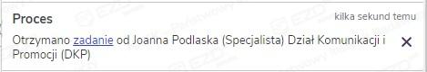 • Powiadomienie otrzyma osoba, do której zostało skierowane zadanie związane z utworzonym procesem.