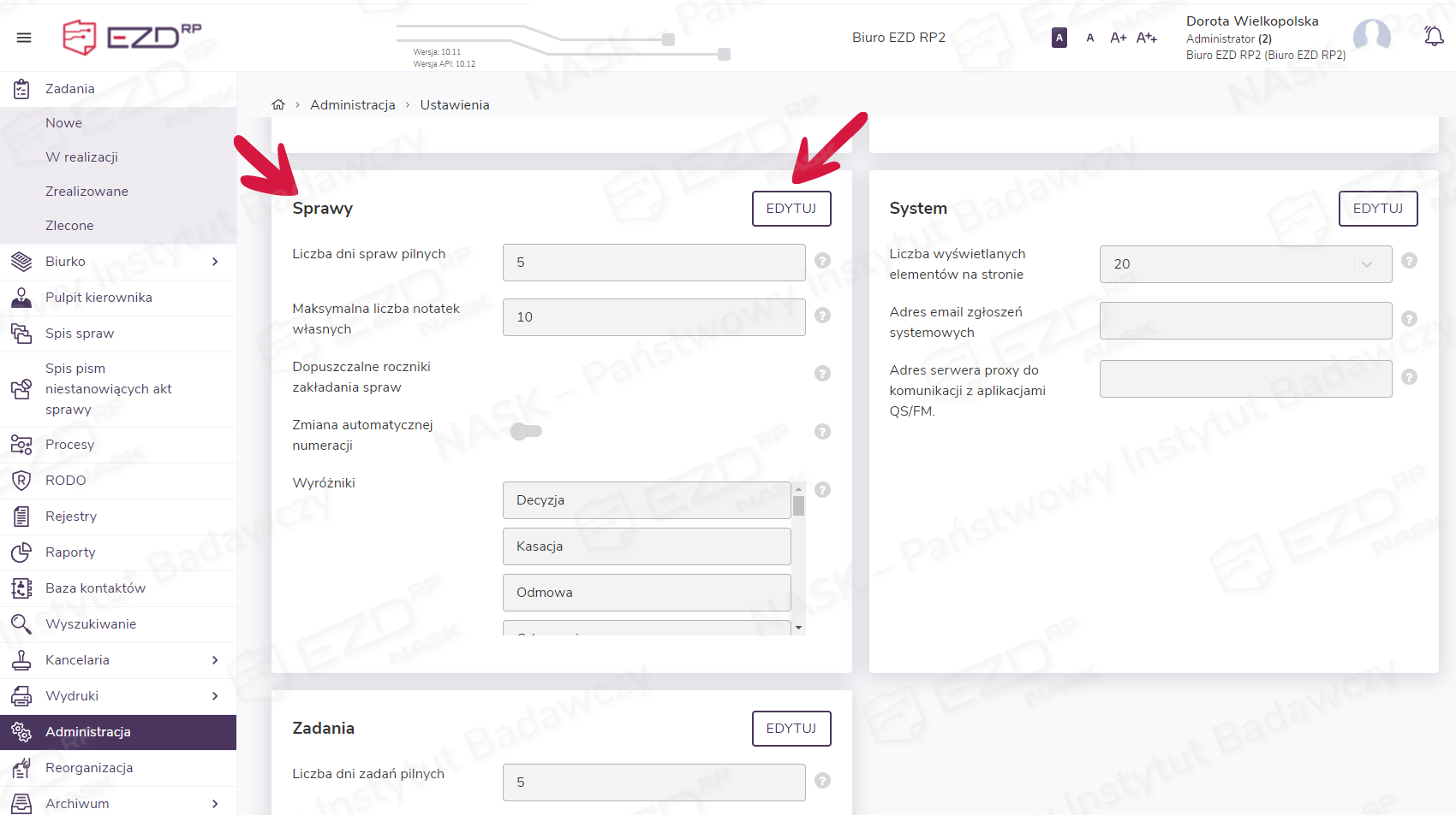 W kolejnym kroku należy odnaleźć sekcję Sprawy i kliknąć przycisk Edytuj.