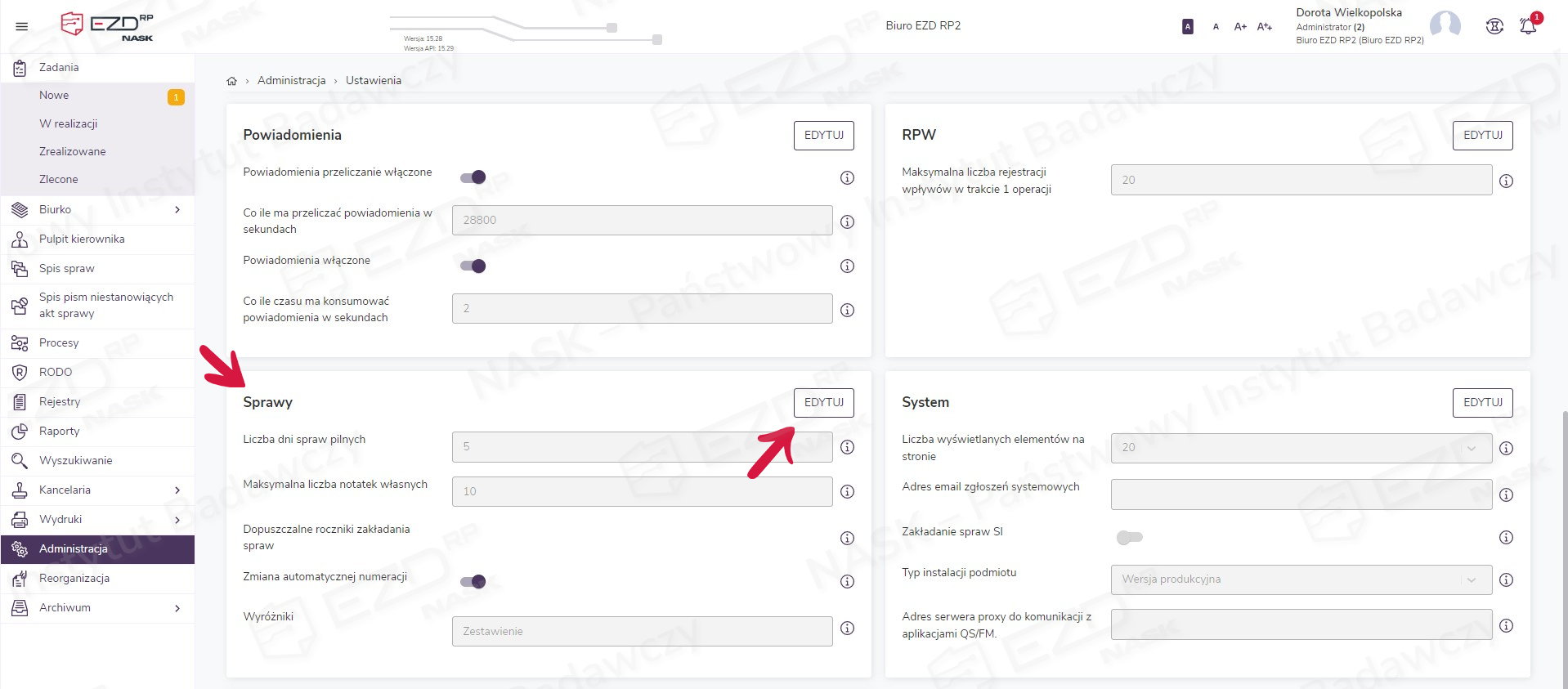 W kolejnym kroku należy odnaleźć sekcję Sprawy i kliknąć przycisk Edytuj.