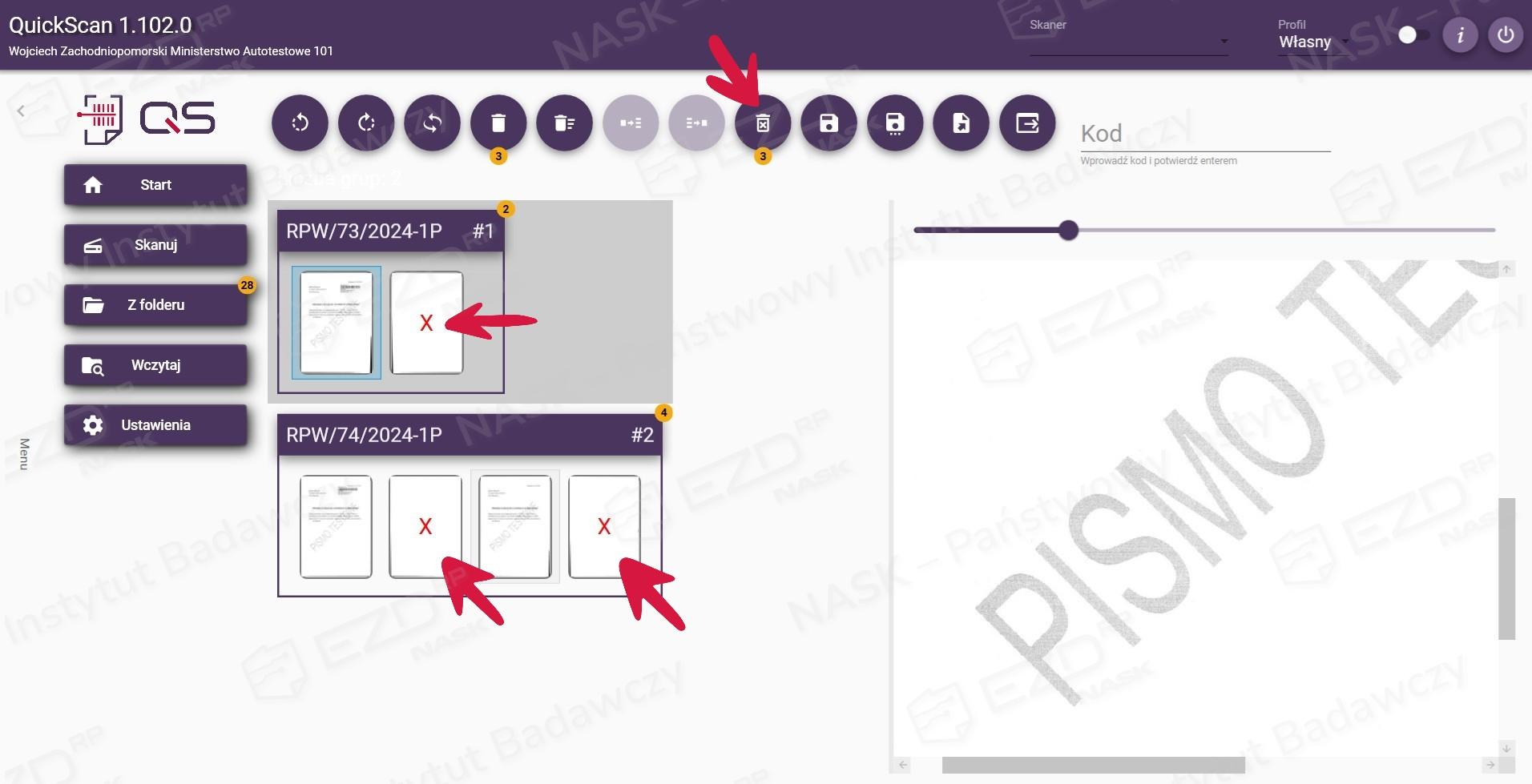 - Usuń zaznaczone dokumenty – usuwa wybraną stronę.