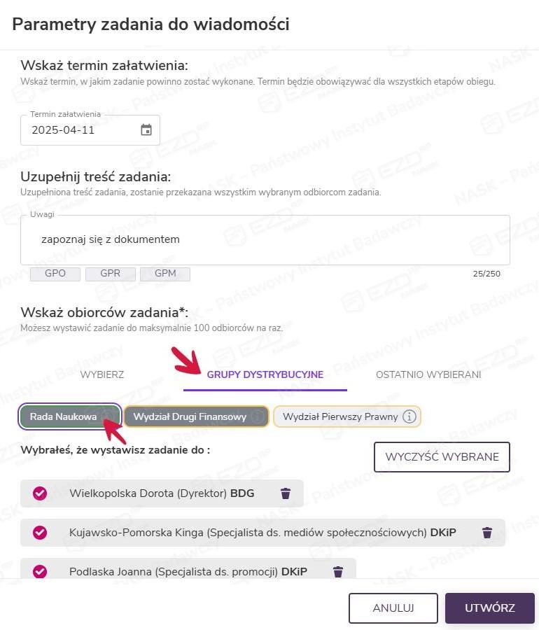 Tworzenie grup dystrybucyjnych i zarządzanie nimi – rozdzielenie korespondencji wpływającej – dla wariantu systemu oznaczonego literą A