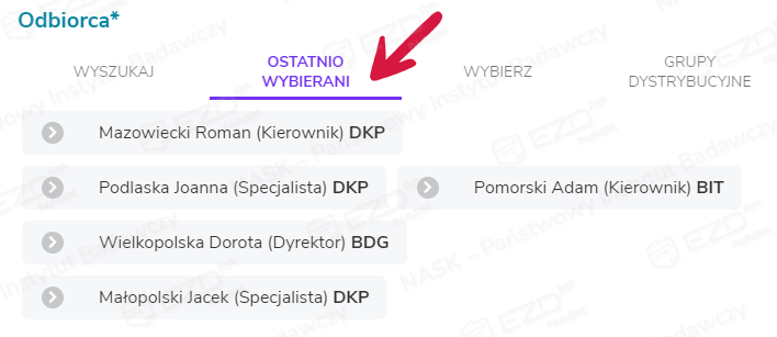 Kolejny sposób to wybranie pracowników spośród wyświetlonych w zakładce Ostatnio wybierani.