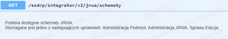 Na podstawie identyfikatora wskazanego w nagłówku metody sprawdzane jest również to, czy określone stanowisko posiada w systemie wymagane uprawnienia do wykonania operacji. To jakie uprawnienia są walidowane na określonym endponcie wskazane jest w swaggerze w opisie każdej z metod.