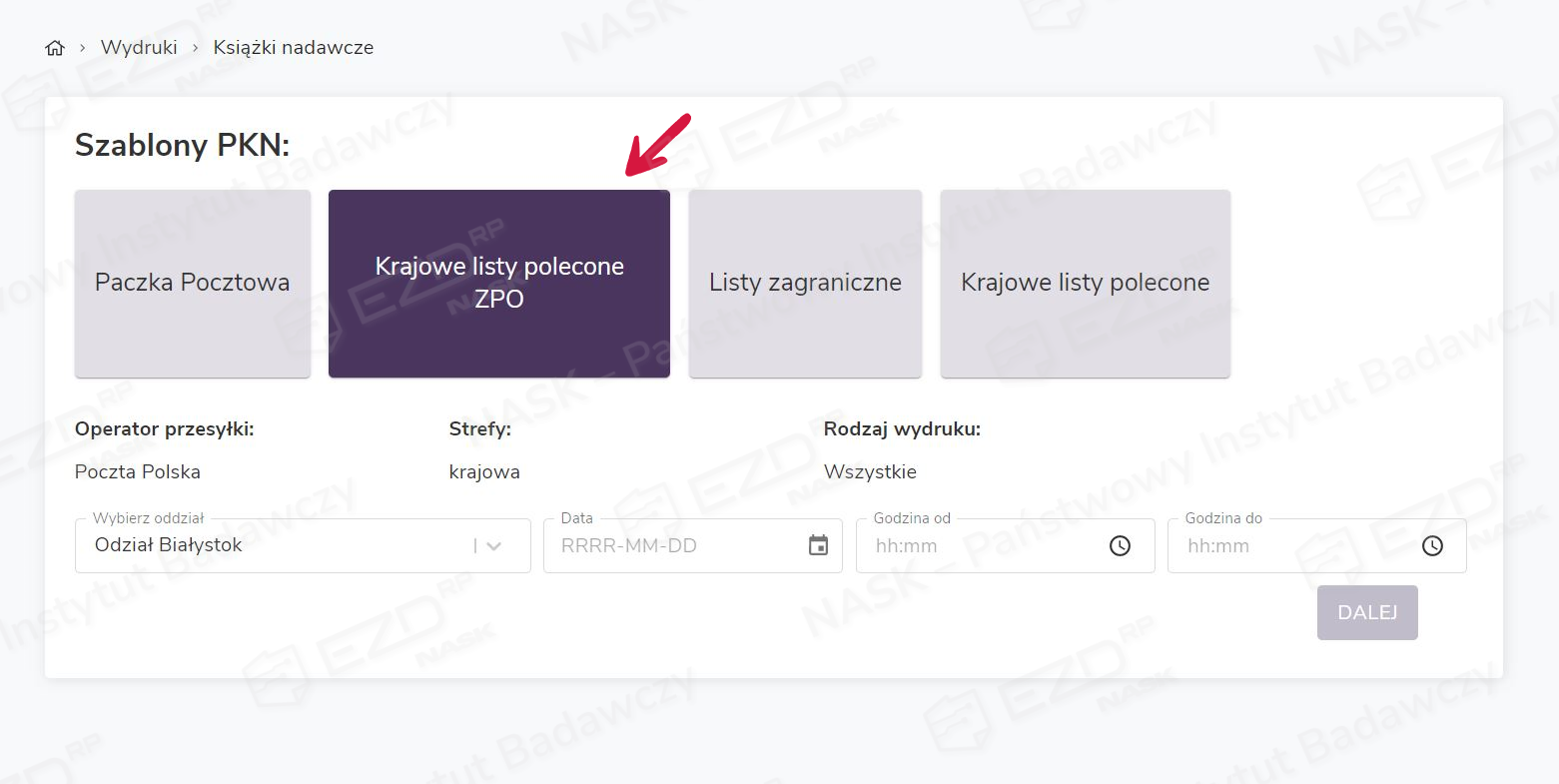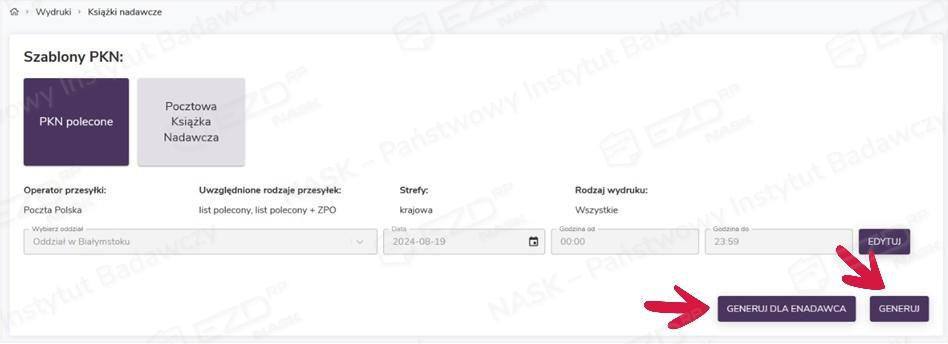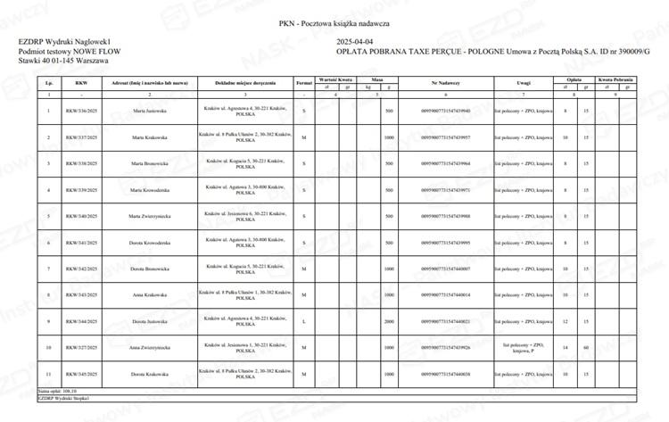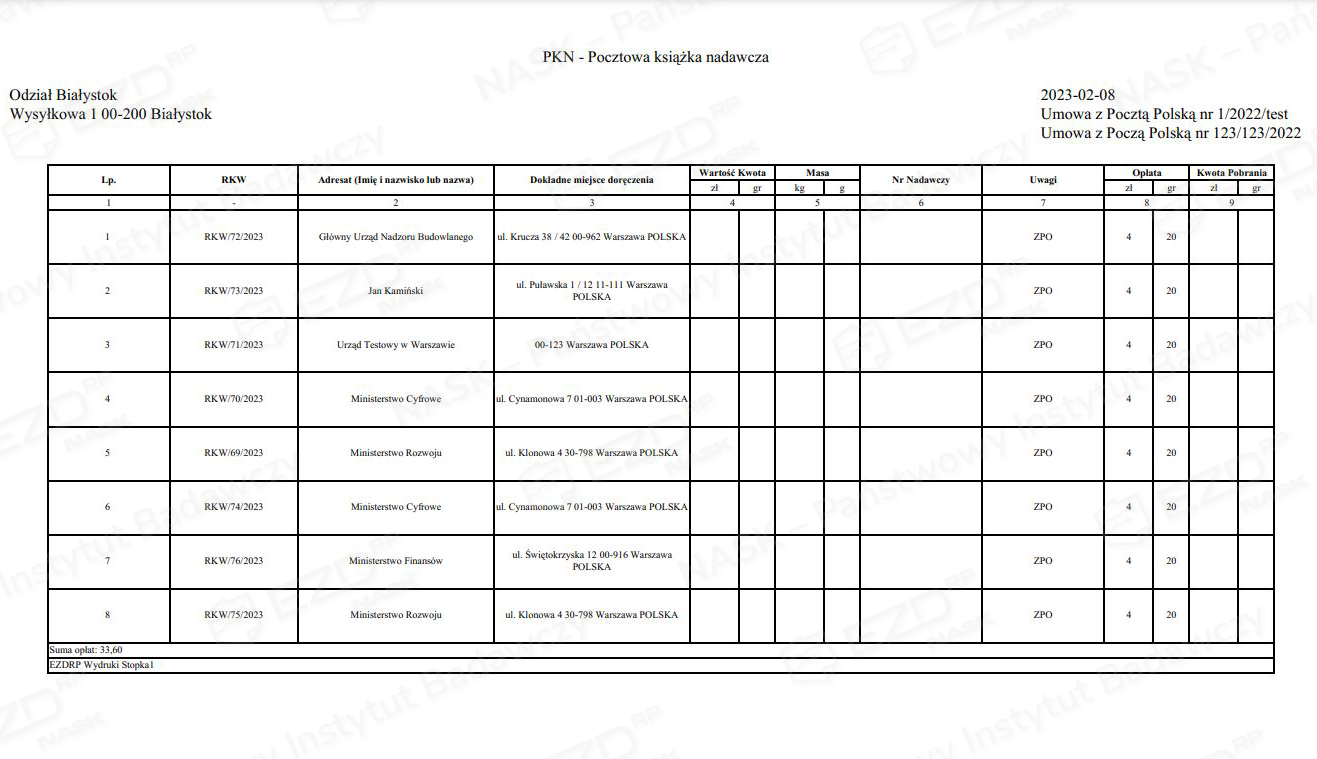 Wydruk pocztowej książki nadawczej (PKN)