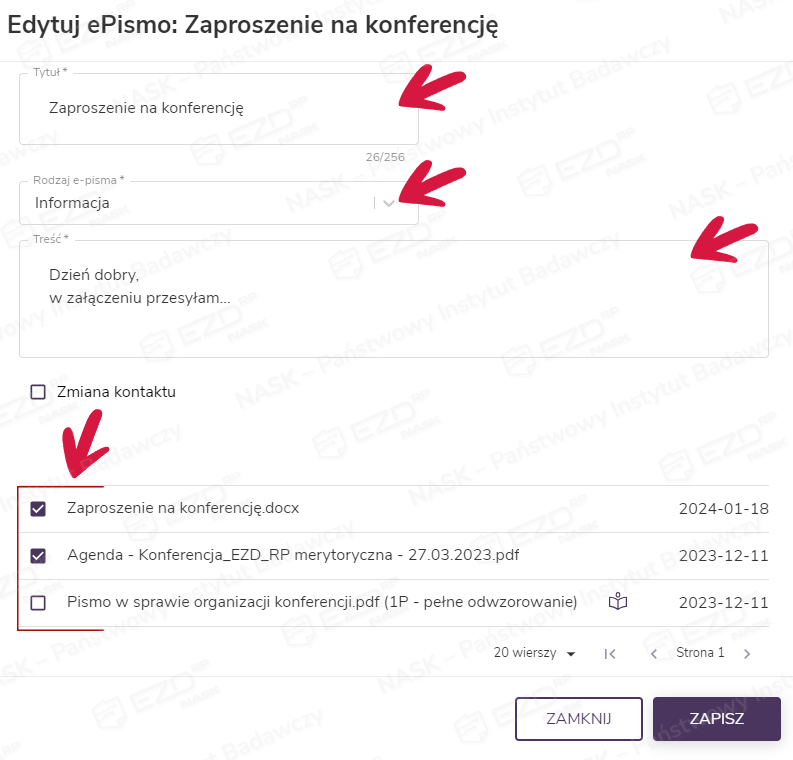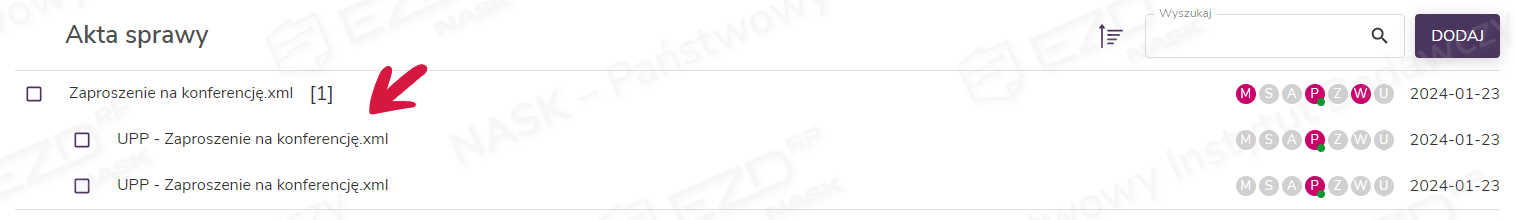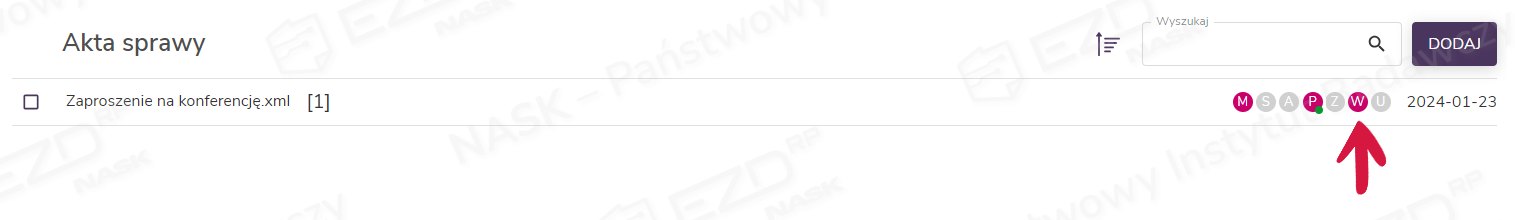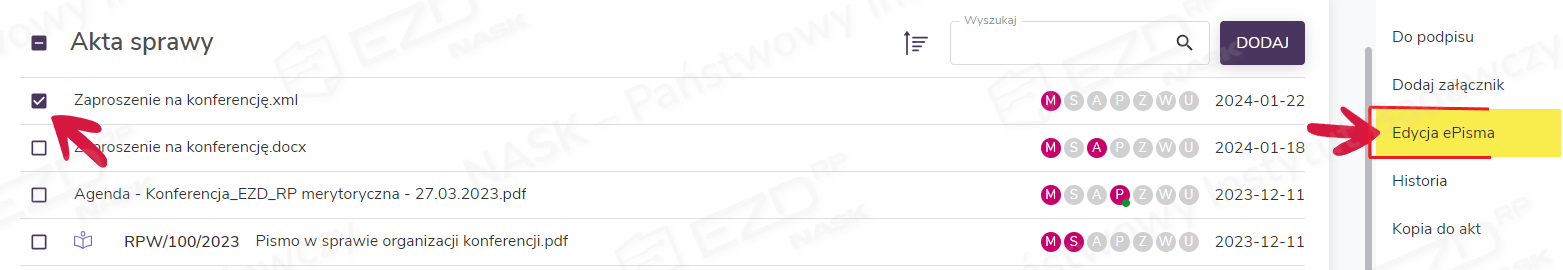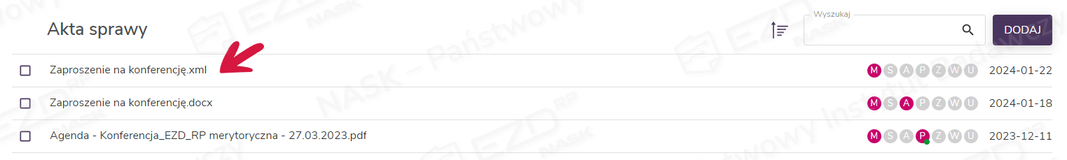 Przygotowane ePismo zostanie dołączone do akt sprawy. Plik będzie miał nazwę tożsamą z nadanym tytułem, a rozszerzenie – XML.