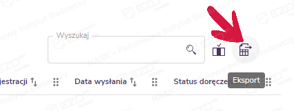 Zestawienie można wyeksportować do pliku w formacie XLSX, CSV lub PDF poprzez naciśnięcie ikony Eksport.